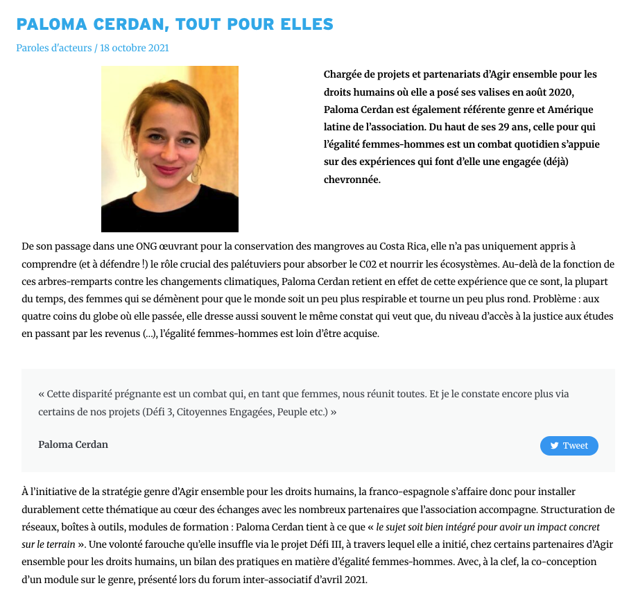 Réalisation de quatre portraits de défenseuses des droits humains dans le cadre de la campagne #HumainesAvantTout menée par l’