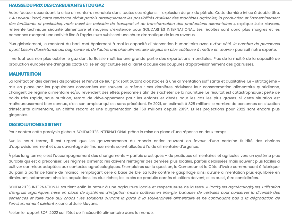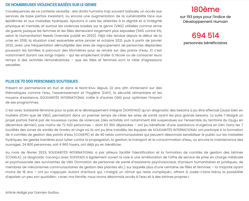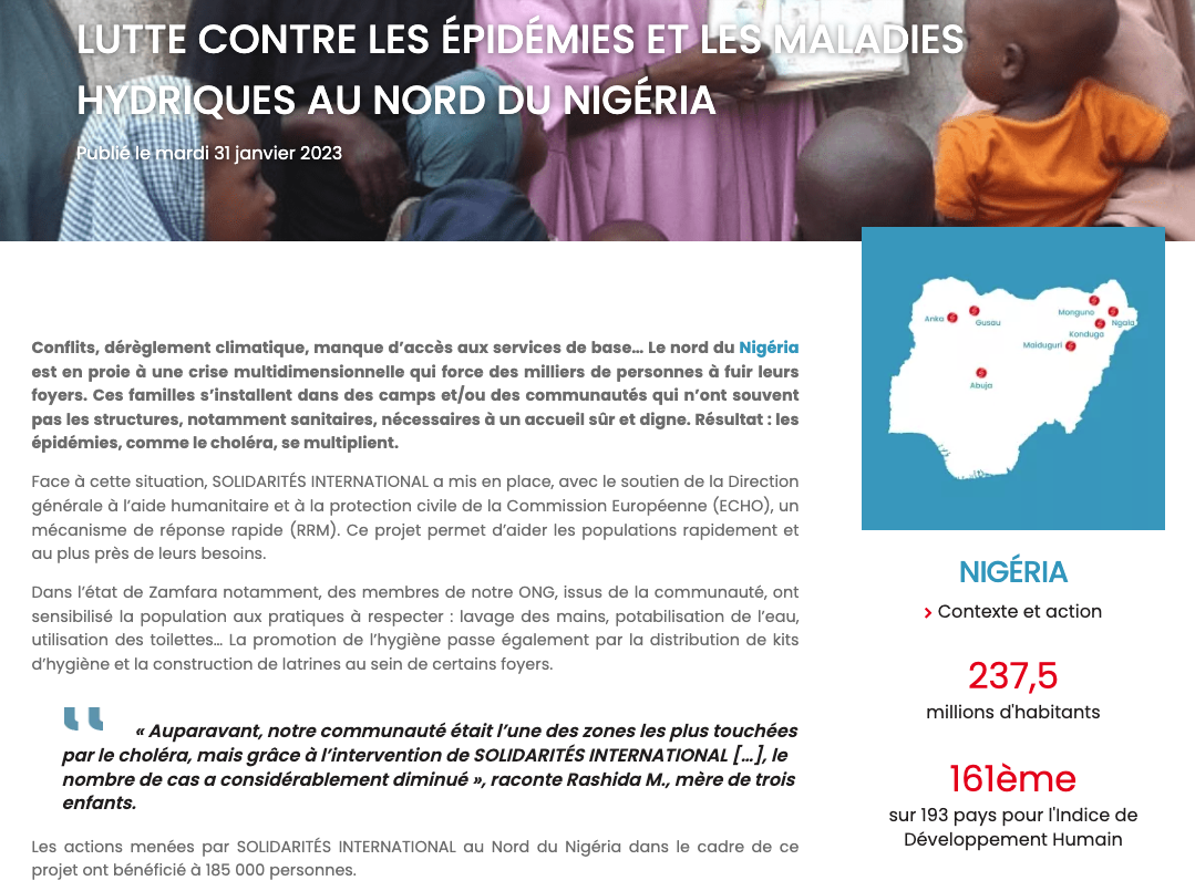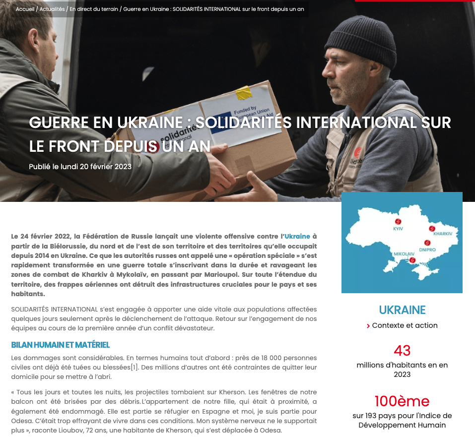 Rédaction de divers contenus (dossiers, focus projets, actualités / articles de terrain) pour le site web de l’ONG Solidarités International et « Aider plus loin », son journal des donateurs (trimestriel).
